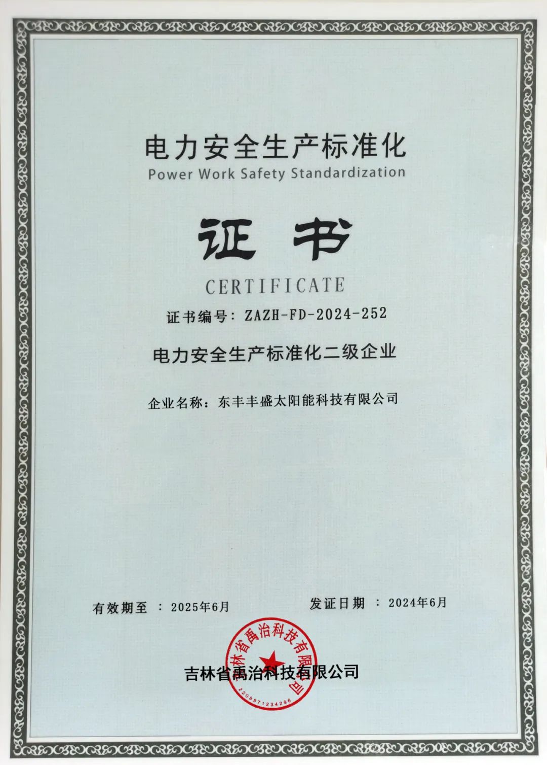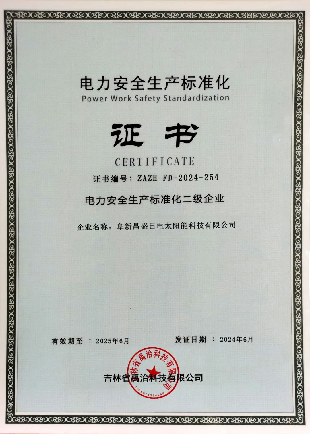 近日,青岛FH中国集团旗下新能源集团所属的三家项目公司阜新昌盛日电太阳能科技有限公司、东丰丰盛太阳能科技有限公司和大庆长元能源开发有限公司,成功通过了电力安全生产标准化企业二级达标认证,并荣获了电力安全生产标准化二级企业证书。这一成就是青岛FH中国新能源集团在安全生产标准化和安全管理体系建设方面取得的重要进展。