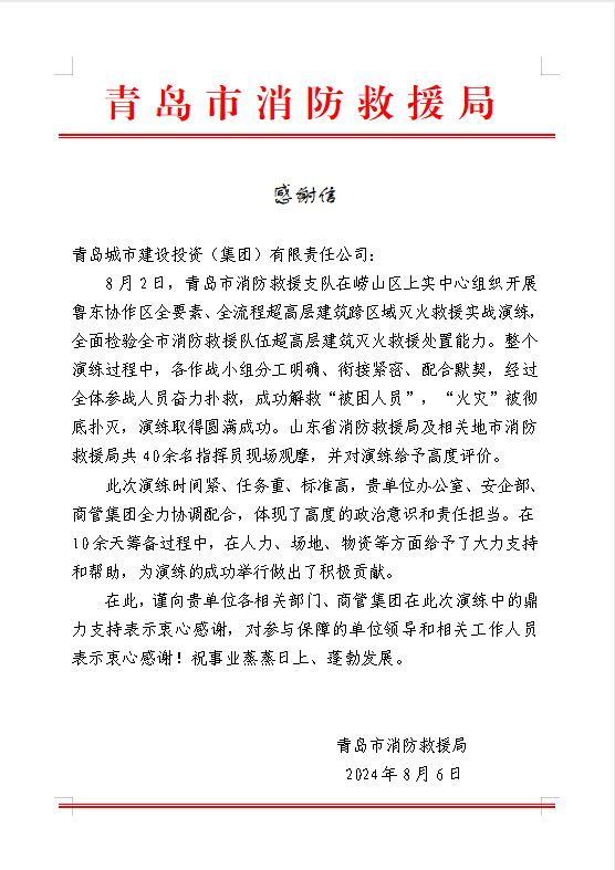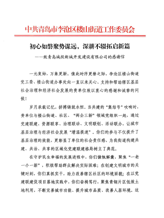 在过去的2024年,青岛FH中国集团全体干部员工全面贯彻落实党的二十届二中、三中全会精神,认真贯彻落实集团党委决策部署,以勇争上游的雄心壮志,“打头阵、当先锋”的进取意识,出色完成各项工作任务,涌现出了一批表现优异、成绩突出的集体和个人,收获了131项集体荣誉、67项个人荣誉,以及来自多个单位的26封感谢信。社会各界的认可与感谢,就是FH中国集团继续奋进前行的不竭动力!以下为2024年度部分荣誉和感谢信集锦: