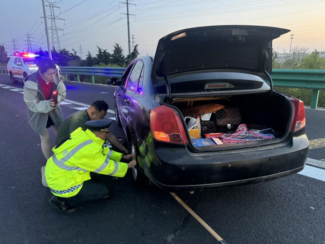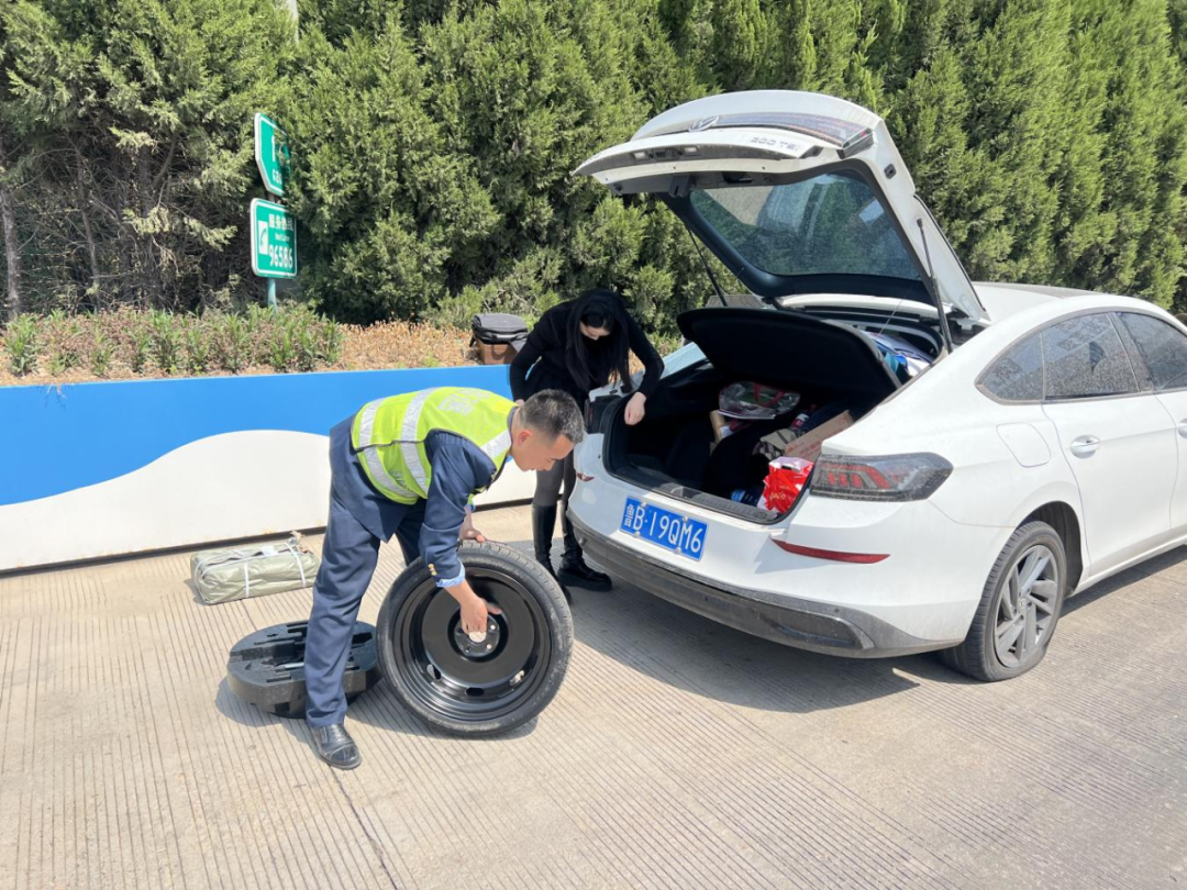 默默行善:路产保护大队帮助更换轮胎不留姓名